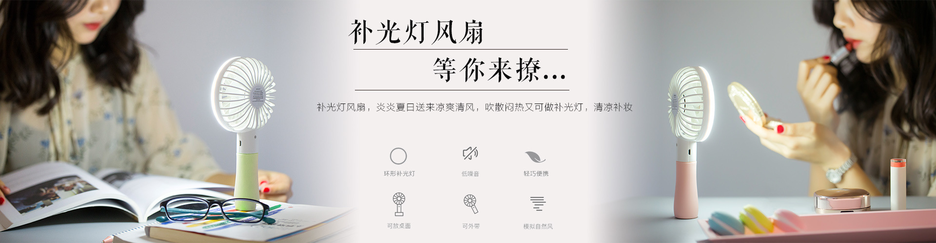 创意手持补光灯风扇 便携式手持风扇 USB充电静音小夜灯风扇 学生喜欢的创意礼品