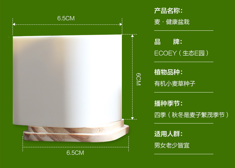 商品名称:【麦·健康】有机小麦草桌面生态种植 健康防辐射diy小麦草榨汁盆栽绿植礼品