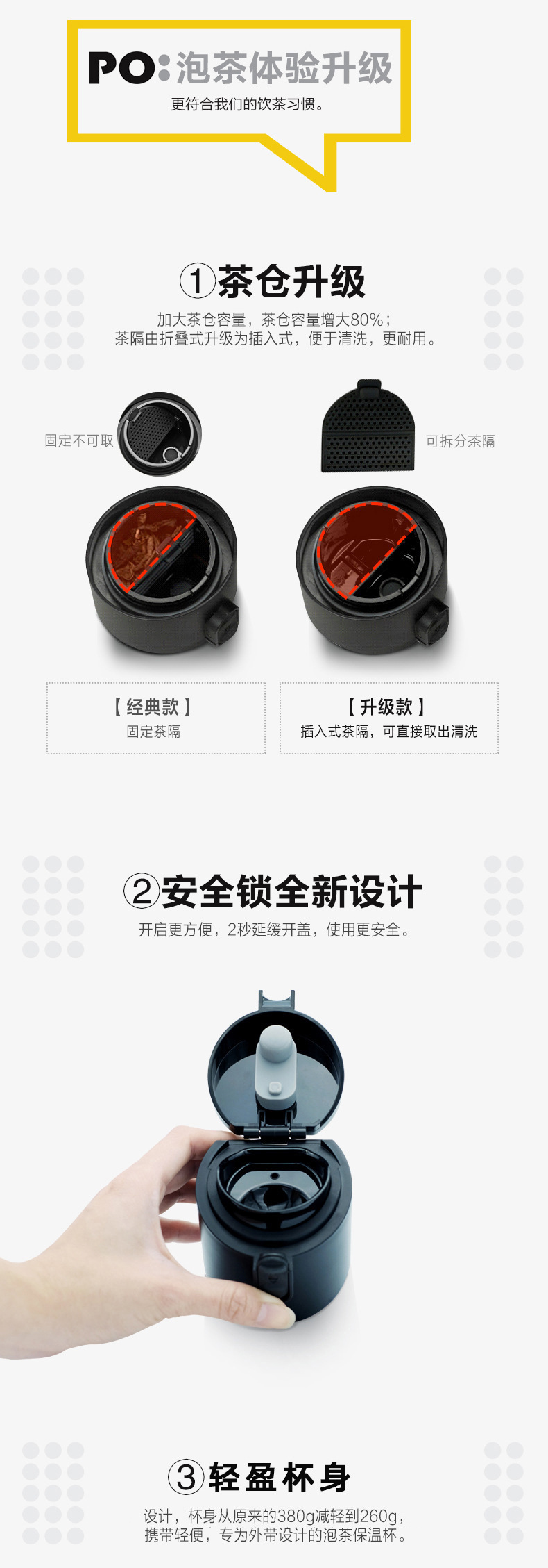商品名称:丹麦PO黑色杯身泡温杯 升级款创意时尚不锈钢保温杯 泡茶隔热车载随手杯 公司福利送什么 入司礼品