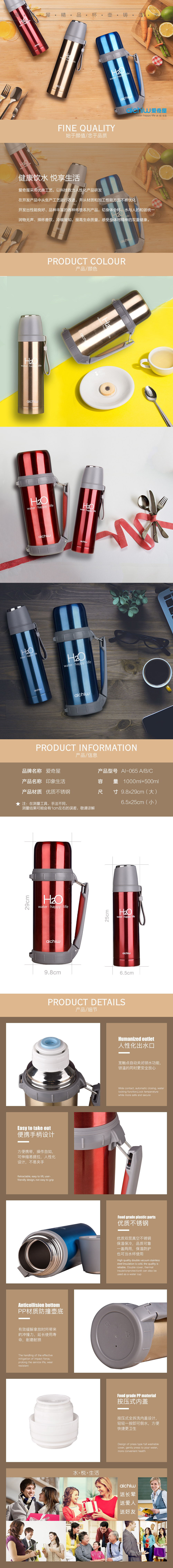 商品名称:印象生活保温杯壶套装 不锈钢保温杯500ML+保温壶1000ML两件套 公司送员工有纪念意义的礼物