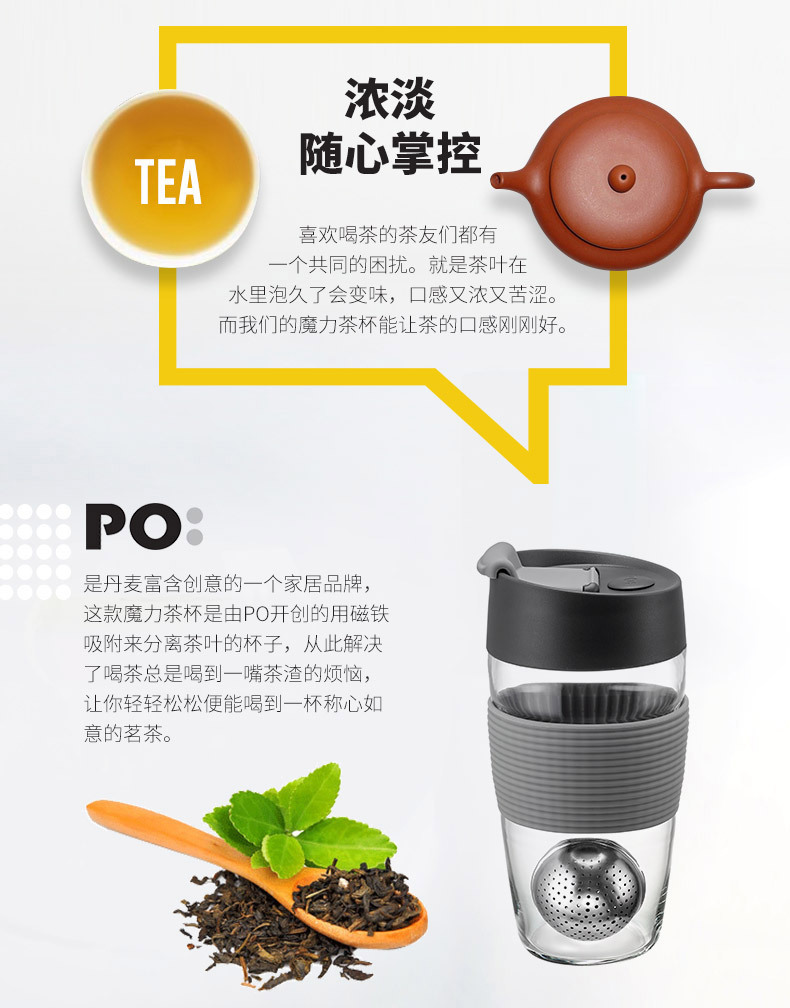 商品名称:丹麦PO 大号时尚创意简约茶杯玻璃杯 茶水分离磁吸魔力杯玻璃杯355ML 高端客户伴手礼