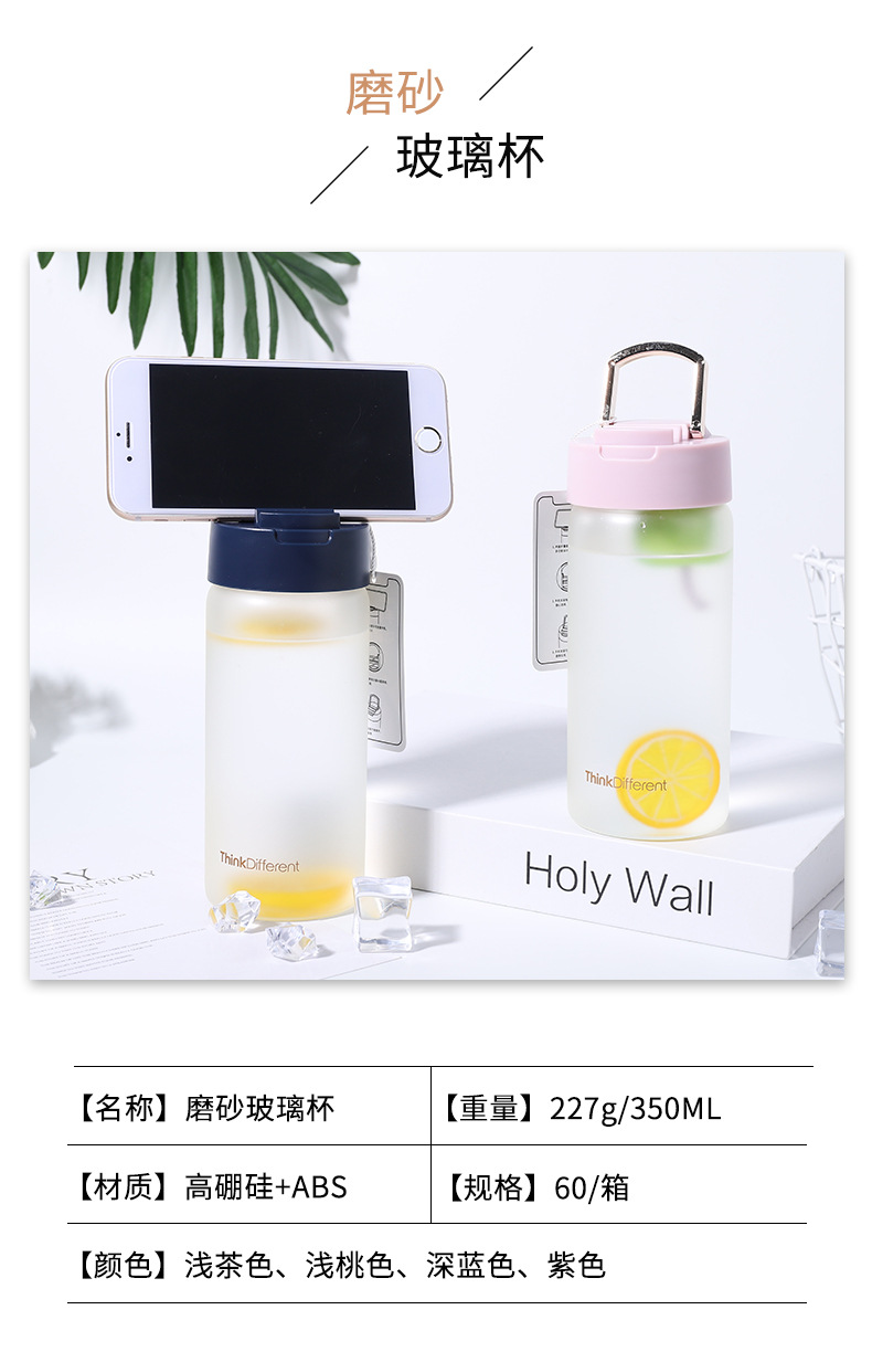 商品名称:创意多功能手机支架玻璃杯 便携磨砂水杯350ML 奖品有哪些