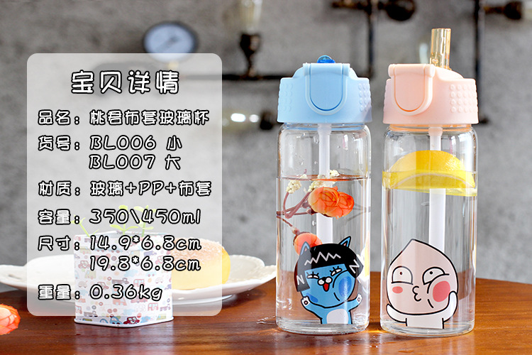 商品名称:带布套卡通动物屁屁吸管玻璃杯 低价互联网礼品
