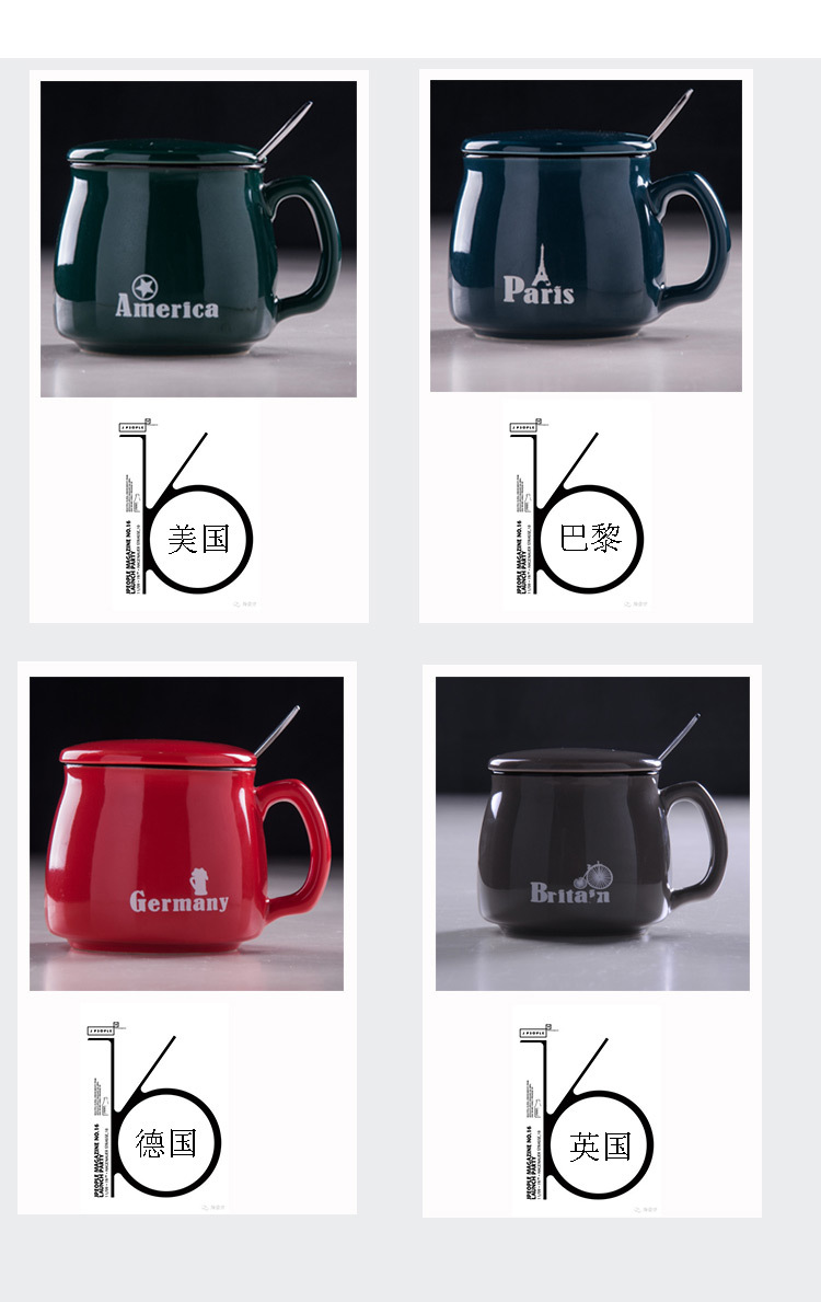 商品名称:日式陶瓷马克杯 简约带杯盖早餐杯 牛奶咖啡杯 促销小礼品(大号绿色款)