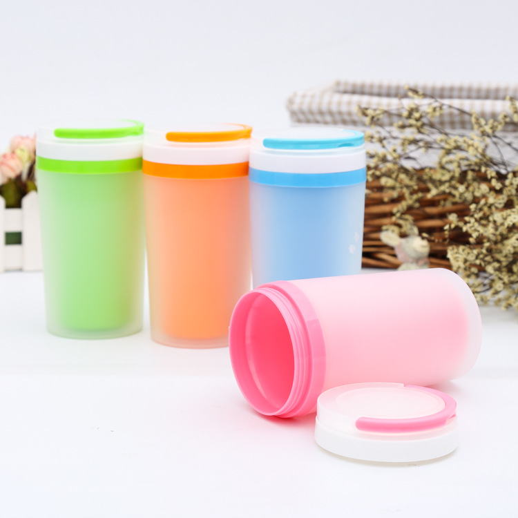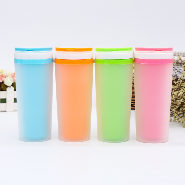 商品名称:创意磨砂双层隔热杯 带提手塑料广告杯 防漏水杯