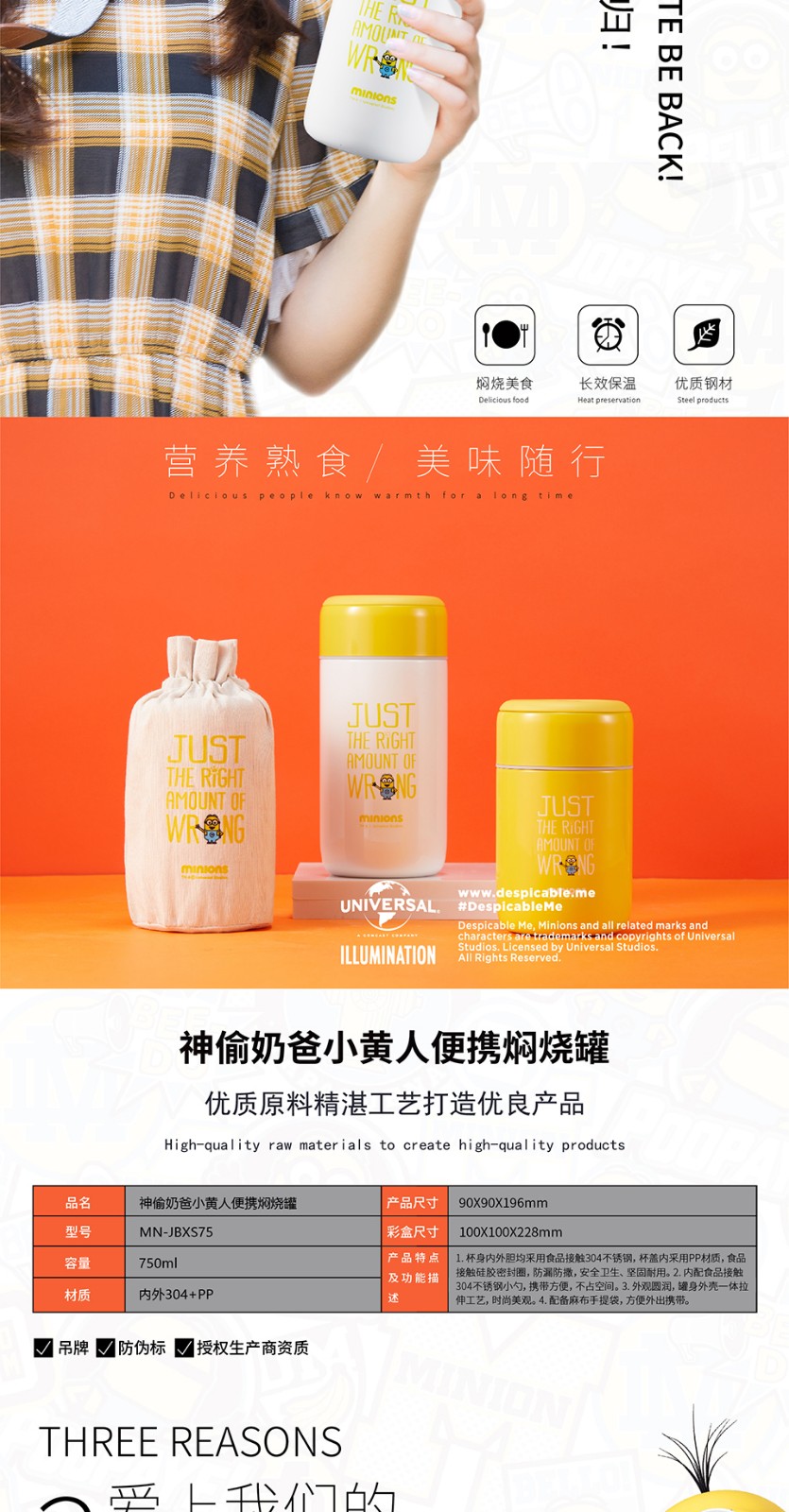 商品名称:小黄人 便携焖烧罐 750ML大容量保温焖烧杯 公司年会送什么礼物