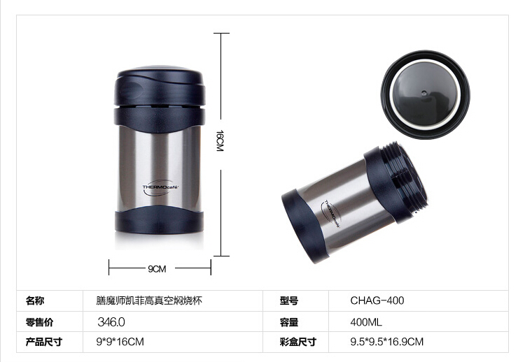 商品名称:膳魔师凯菲(THERMOcafe)高真空焖烧杯400ML 焖烧保温杯CHAG-400SBK 公司周年礼物
