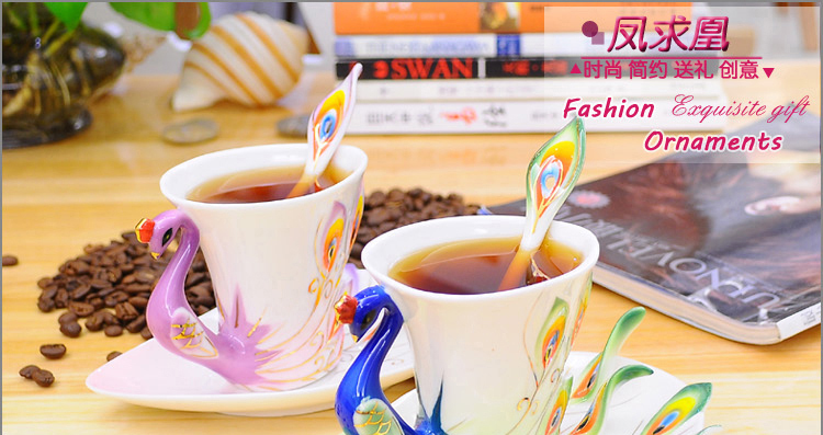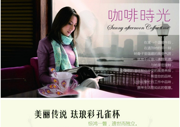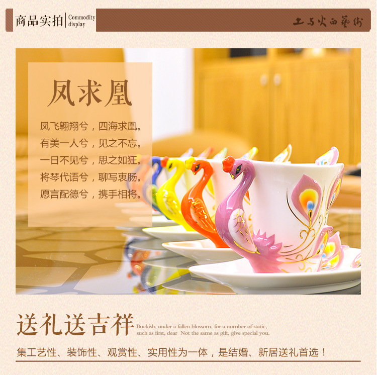 商品名称:珐琅彩孔雀杯 陶瓷杯碟套装 国庆春节礼品
