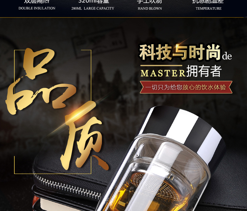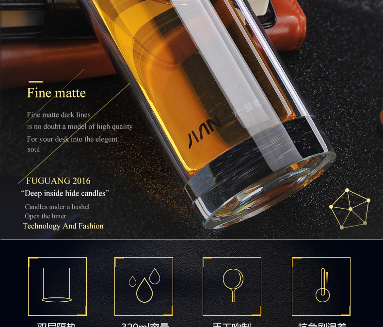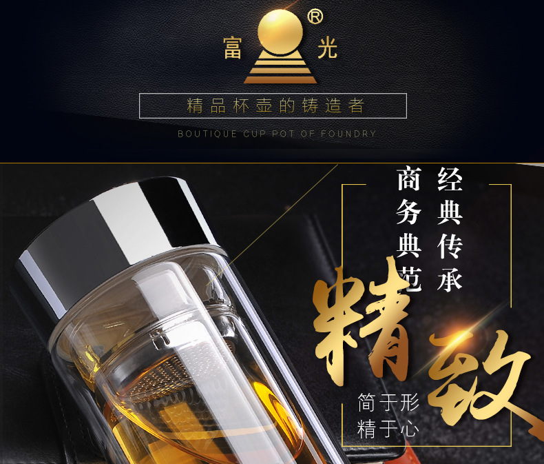 商品名称:FUGUANG 富光健牌320ML厚底水晶玻璃便携带茶滤商务饮水杯 做活动送什么小礼品好