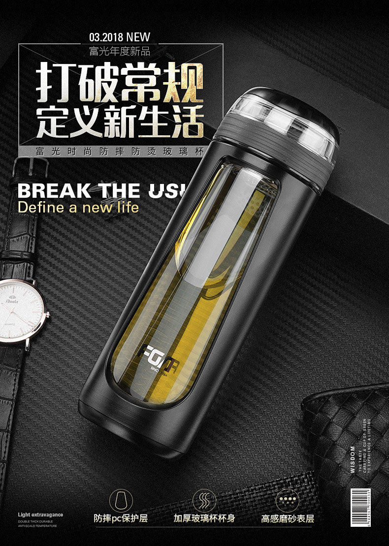 商品名称:FUGUANG 富光车载耐热防烫带茶滤办公水杯 商务杯 新品推广会 小礼品