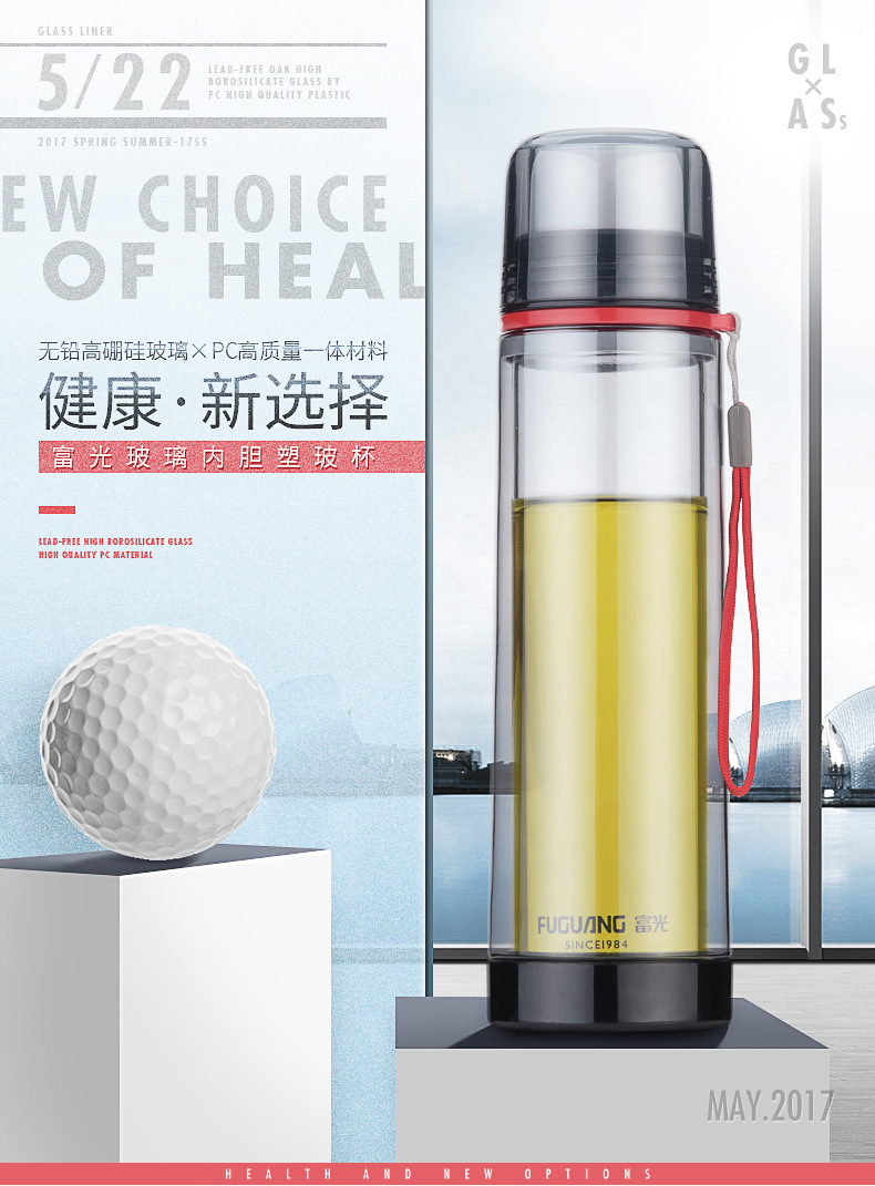 FUGUANG 富光 玻璃内胆便携提绳塑玻杯 环保办公杯 创意签到礼品