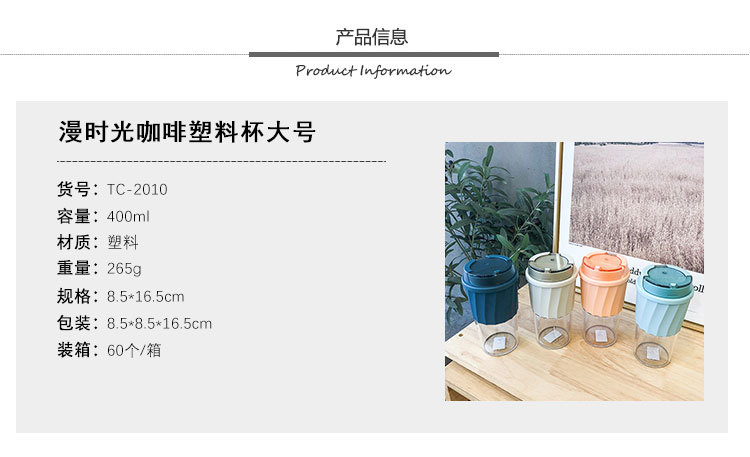 商品名称:漫时光咖啡杯 简约便携随手杯400ML 清爽礼品定制