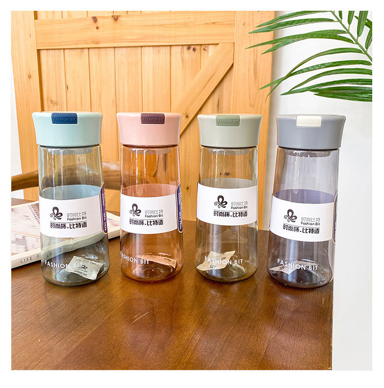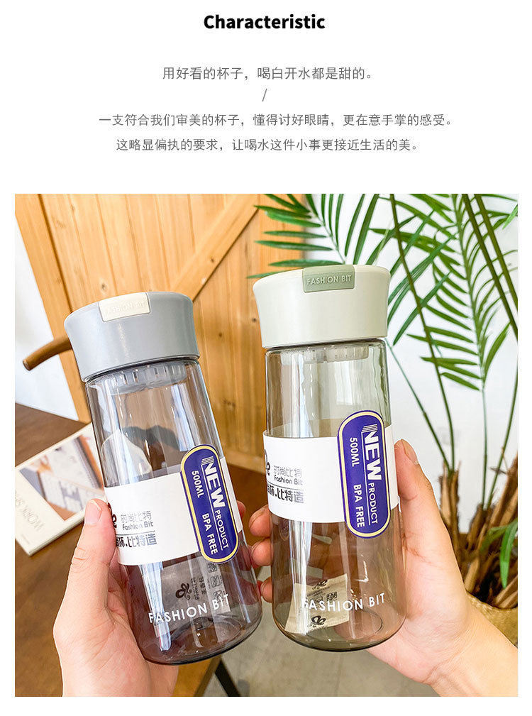 商品名称:简约英文朋克塑料杯 户外便携太空杯 带茶漏防摔水杯500ML 员工福利送什么