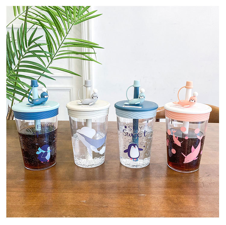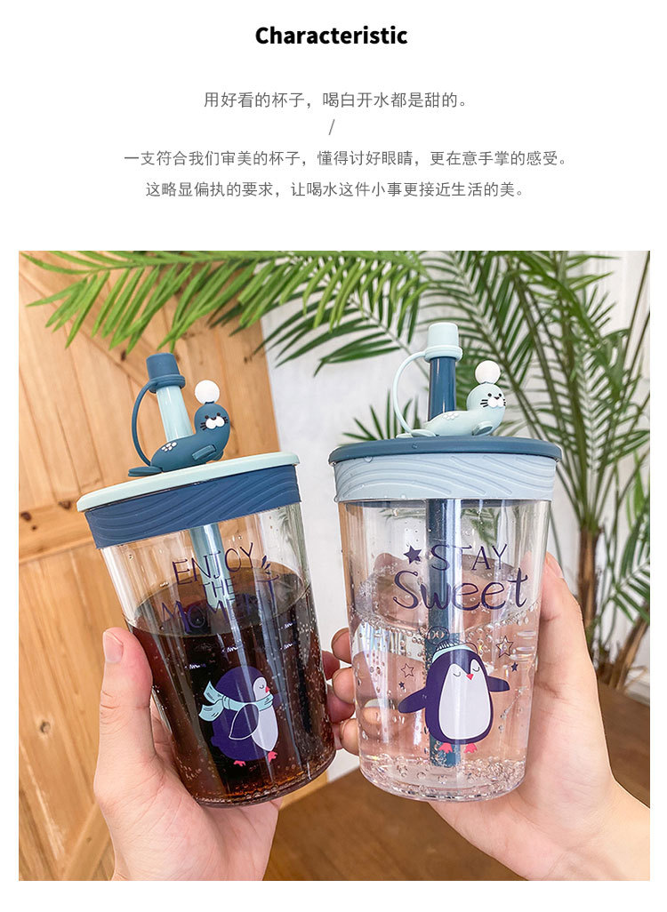 商品名称:个性海豹吸管杯 清新可爱塑料杯450ML 礼品杯定制