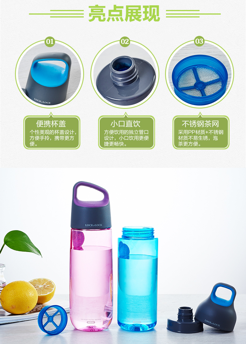 商品名称:乐扣乐扣(Lock&Lock)创意运动水壶 塑料便携随手杯 带漏网茶杯590ML