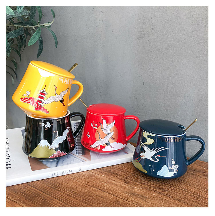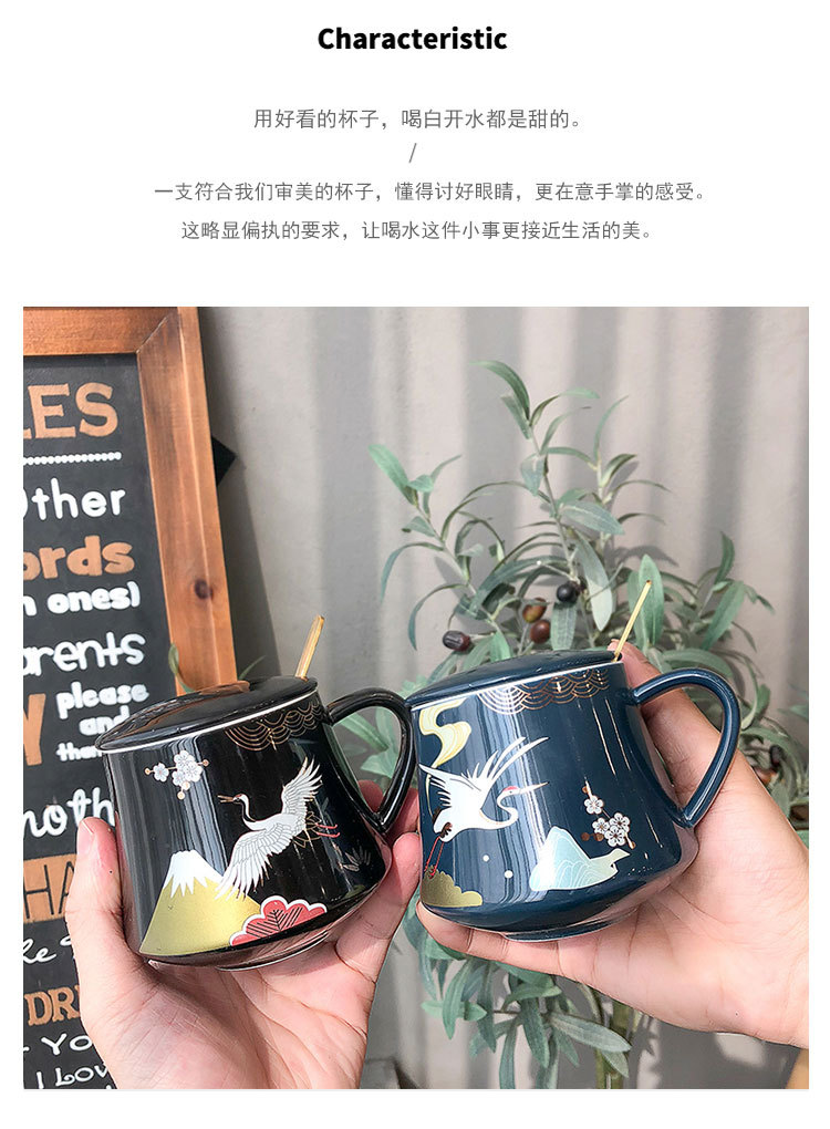 商品名称:国潮风 复古仙鹤马克杯 陶瓷杯带盖带勺 茶杯咖啡杯 实用小礼品