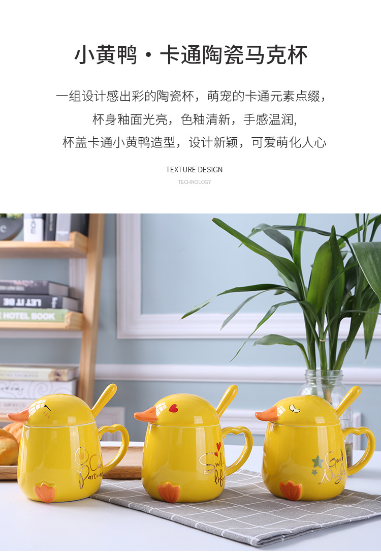 商品名称:创意卡通陶瓷小黄鸭陶瓷水杯子带盖勺 有意思的礼品网站
