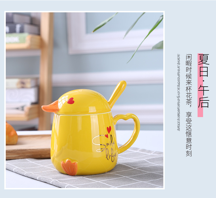 创意卡通陶瓷小黄鸭陶瓷水杯子带盖勺 有意思的礼品网站