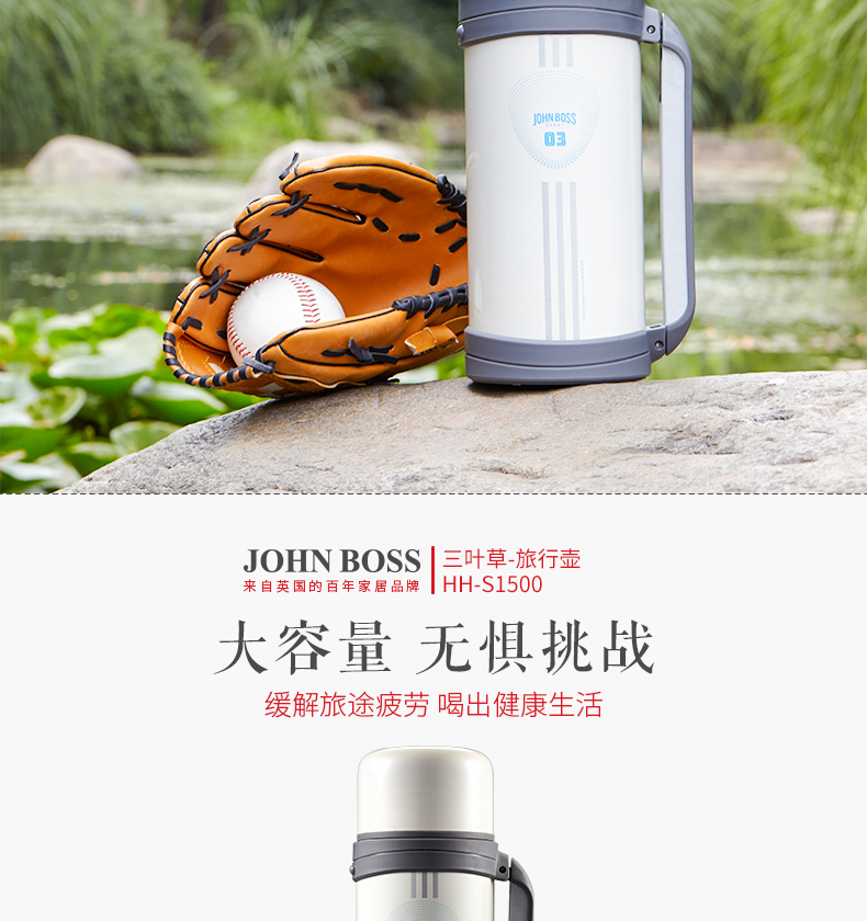 商品名称:JOHN BOSS(英国) 三叶草旅行壶 大容量保温杯 1500ML 公司组织活动奖品