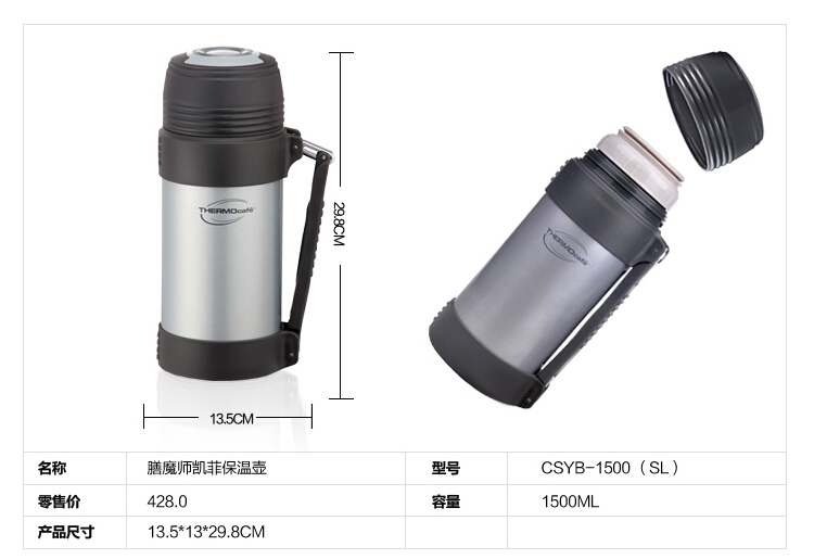 商品名称:膳魔师凯菲(THERMOcafe)大容量保温杯1500ML 户外便携保温壶CSYB-1500 公司活动礼品定制