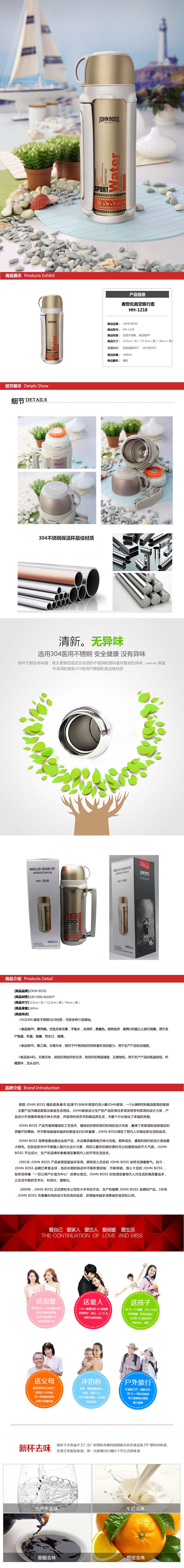 商品名称:JOHN BOSS(英国) 麦哲伦真空旅行壶1800ml HH-1218 促销宣传礼品