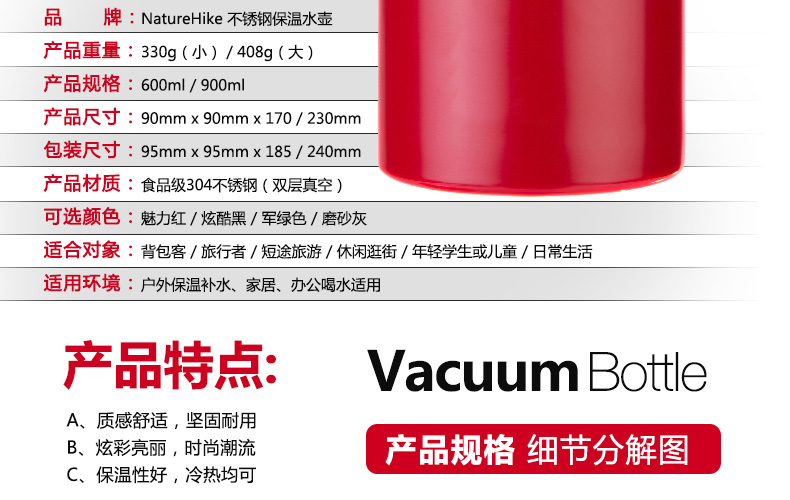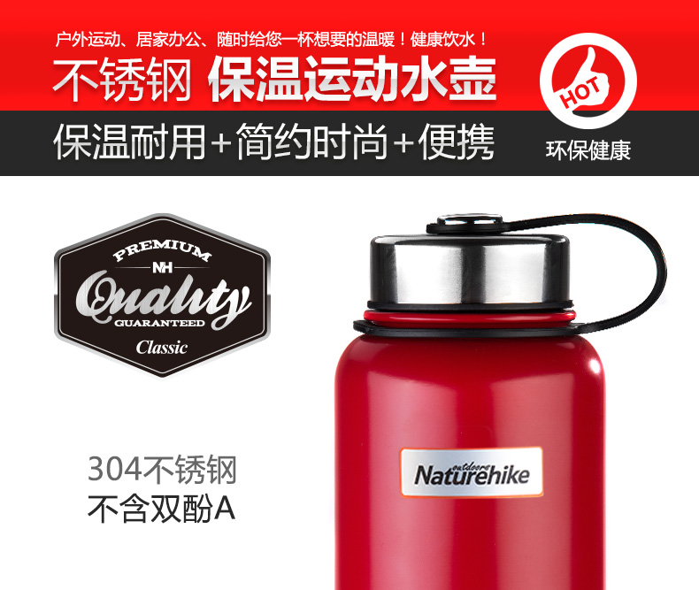 商品名称:Naturehike 不锈钢真空保温杯 大容量保温壶保温瓶 户外 旅行水壶