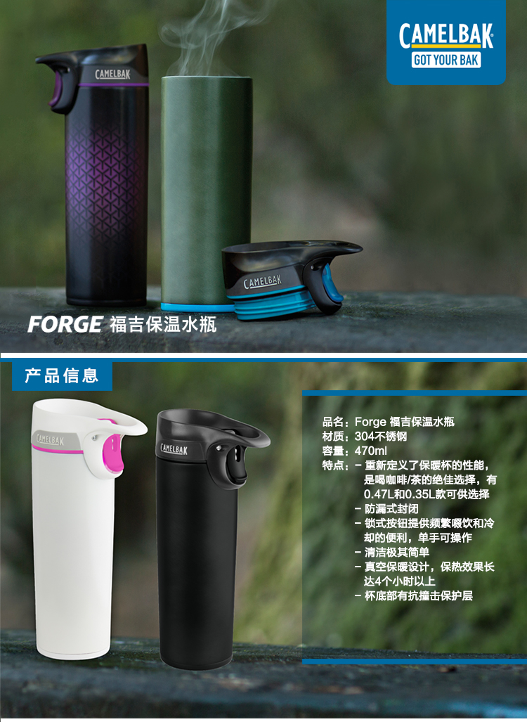 商品名称:驼峰(camelbak)Forge福吉保温水瓶 创新设计旅行防漏杯(白色)470ML