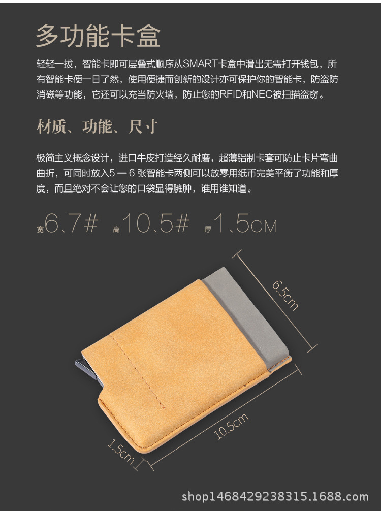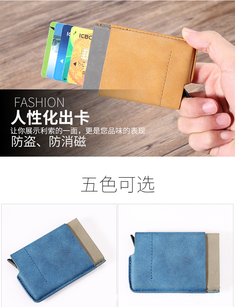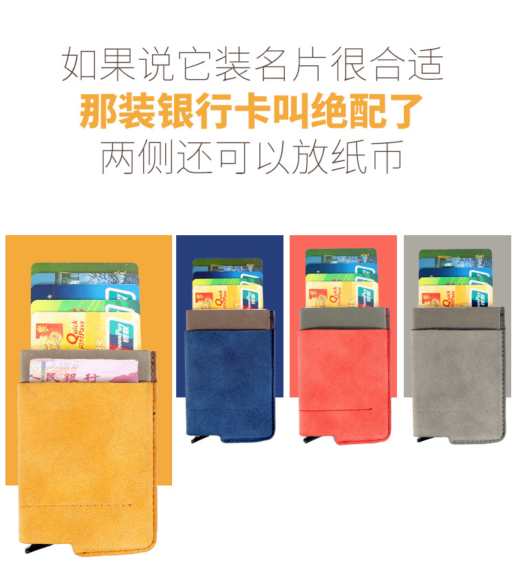 商品名称:进口反绒牛皮自动弹出名片盒 零钱卡包 银行卡夹 商务礼品定制