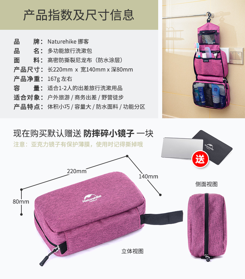 商品名称:Naturehike专业防水洗漱包 出差旅行化妆包 带YKK拉链 专业户外品牌