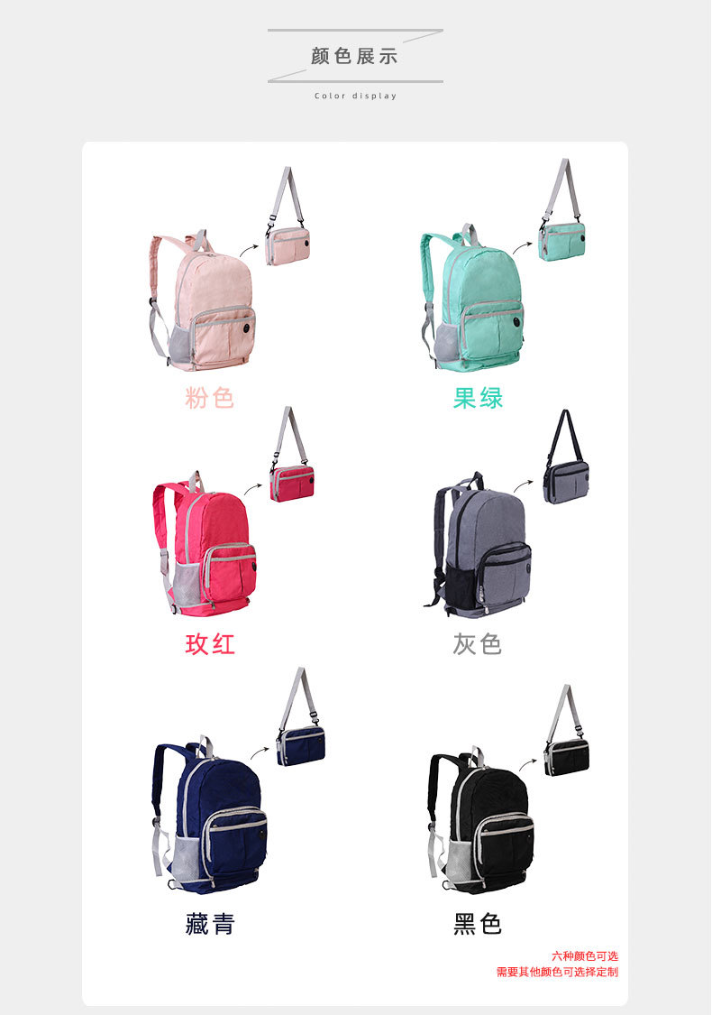 商品名称:背挎两用背包防水折叠多功能双肩包学生书包 创意小礼品