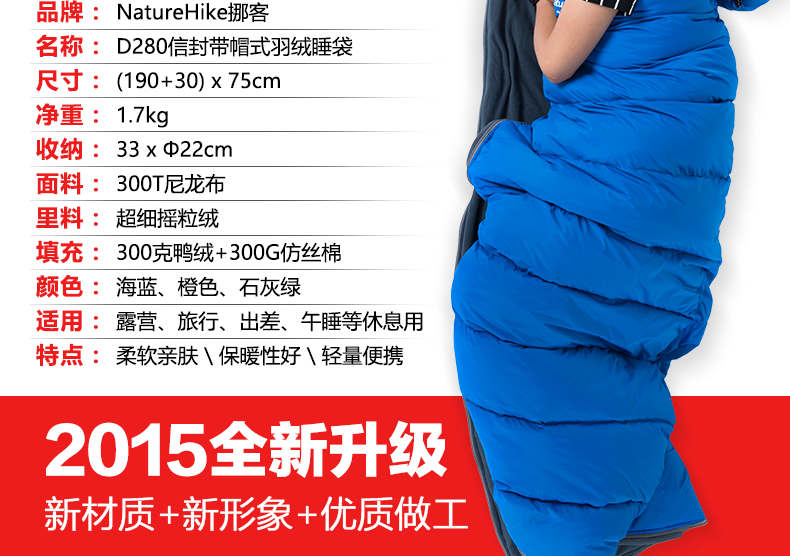 商品名称:Naturehike 可拼接羽绒睡袋 超轻便携冬季睡袋 户外露营必备