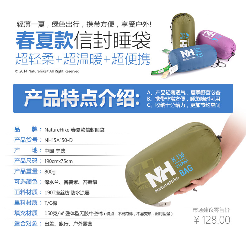 商品名称:Naturehike 春夏款信封睡袋 户外露营睡袋 午休睡袋