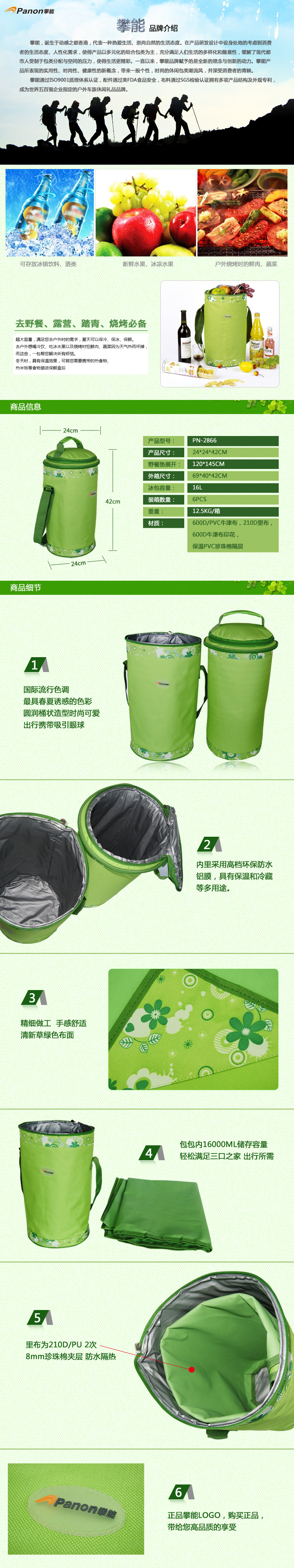 商品名称:攀能(Panon)绿野仙踪野餐垫冰包 三合一多功能冰包16L PN-2866