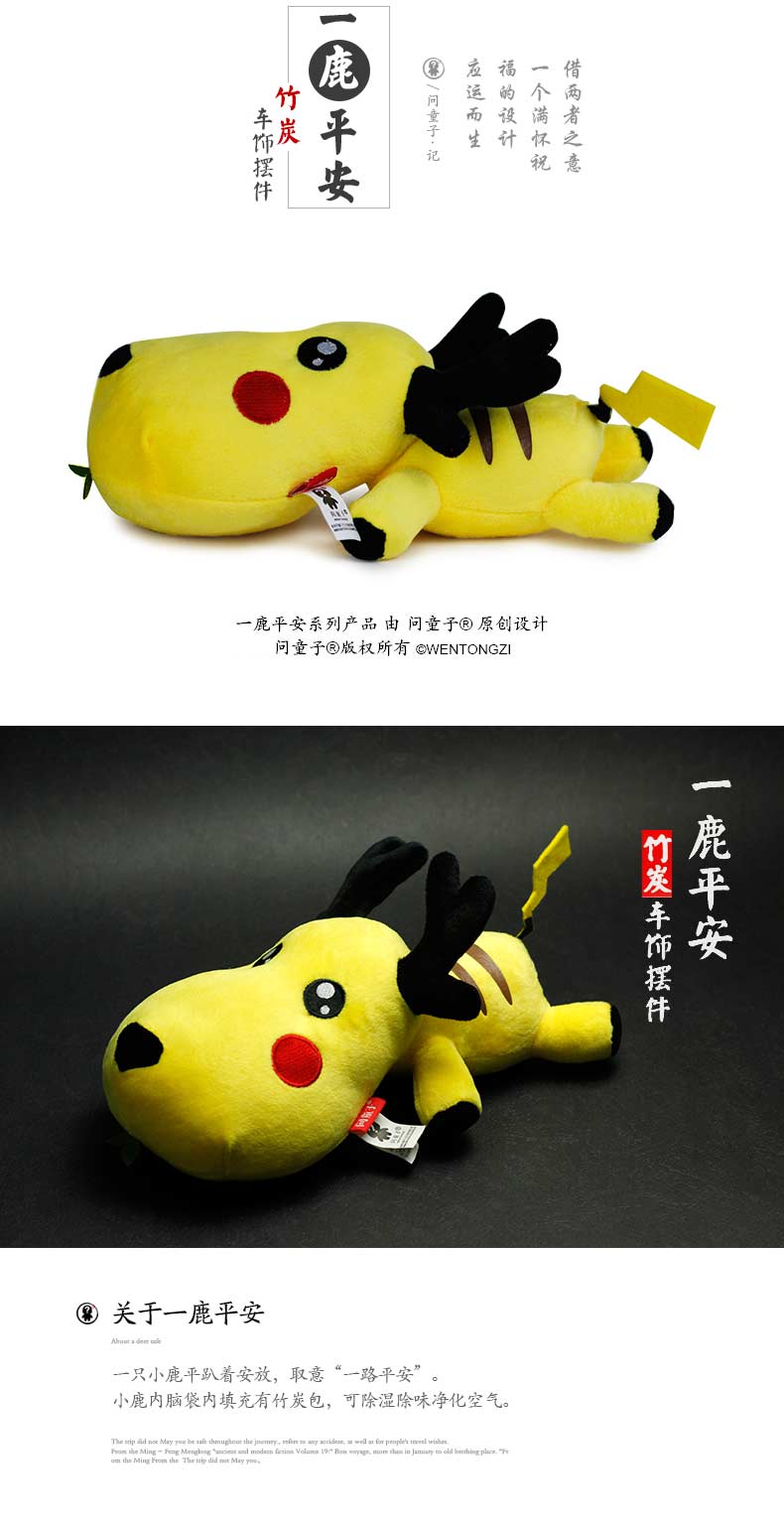 商品名称:一路平安竹炭包公仔·交警小鹿 车用/家用空气净化摆件