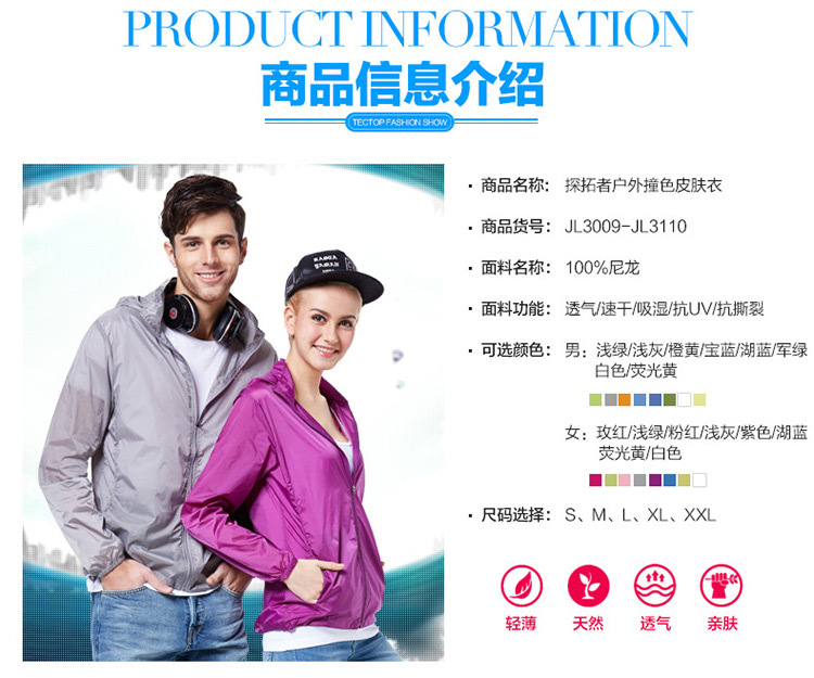 商品名称:时尚专业糖果色皮肤风衣 户外运动风衣 广告风衣定制
