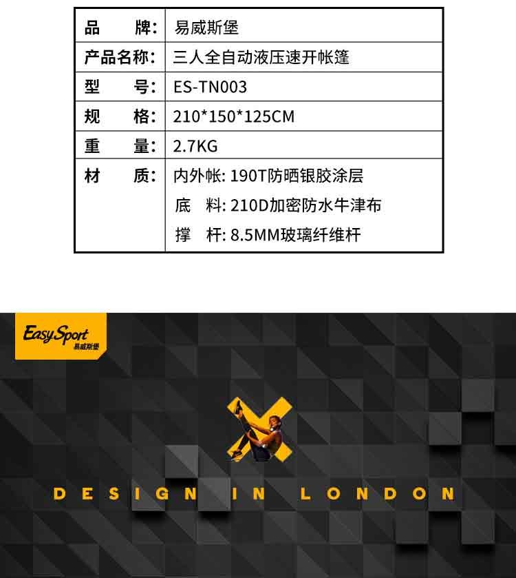 商品名称:易威斯堡(EasySport)三人大容量透气帐篷 全自动液压速开帐篷 户外礼品