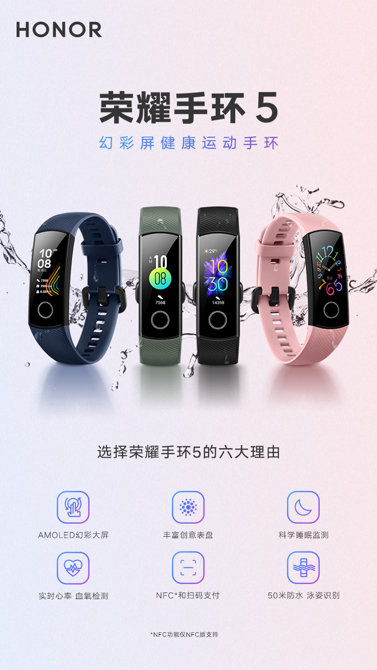 商品名称:华为(HUAWEI)荣耀手环5 智能运动 幻彩屏触控 睡眠、血氧检测 实时心率 移动支付 抽奖礼品方案 营销馈赠礼品