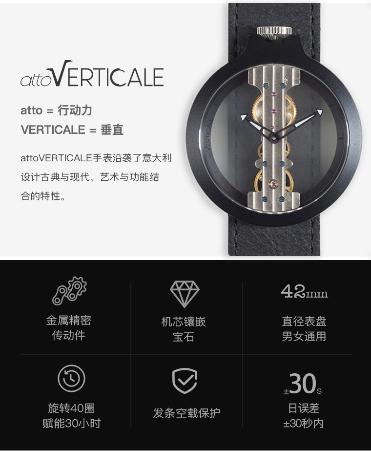 attoVERTICALE意大利时尚机械V腕表 高档蓝宝石镶嵌 创意商务礼品