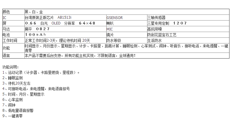 商品名称:智能手环 蓝牙耳机二合一时尚运动手环 时尚商务礼品 活动奖品