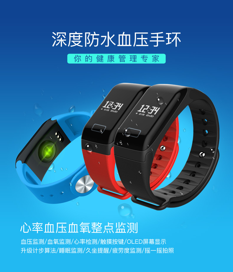 商品名称:智能手环 运动计步时尚手环礼品 深度防水血压监测手环 商务礼品