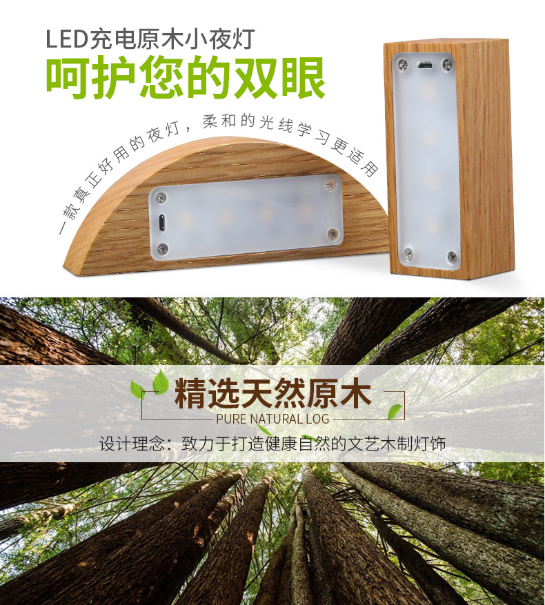 商品名称:一块原木B款 led触控充电台灯 床头灯 护眼灯 文艺创意礼品