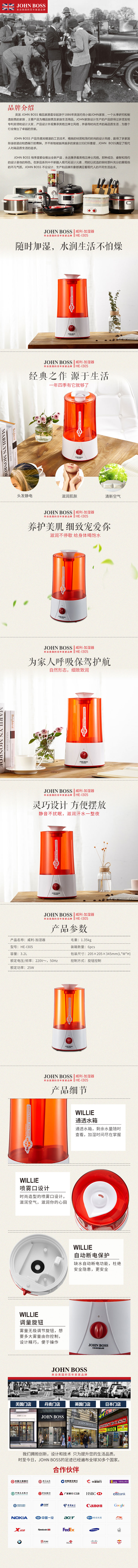 商品名称:JOHN BOSS(英国)加湿器 3.2L持久加湿 活动奖品