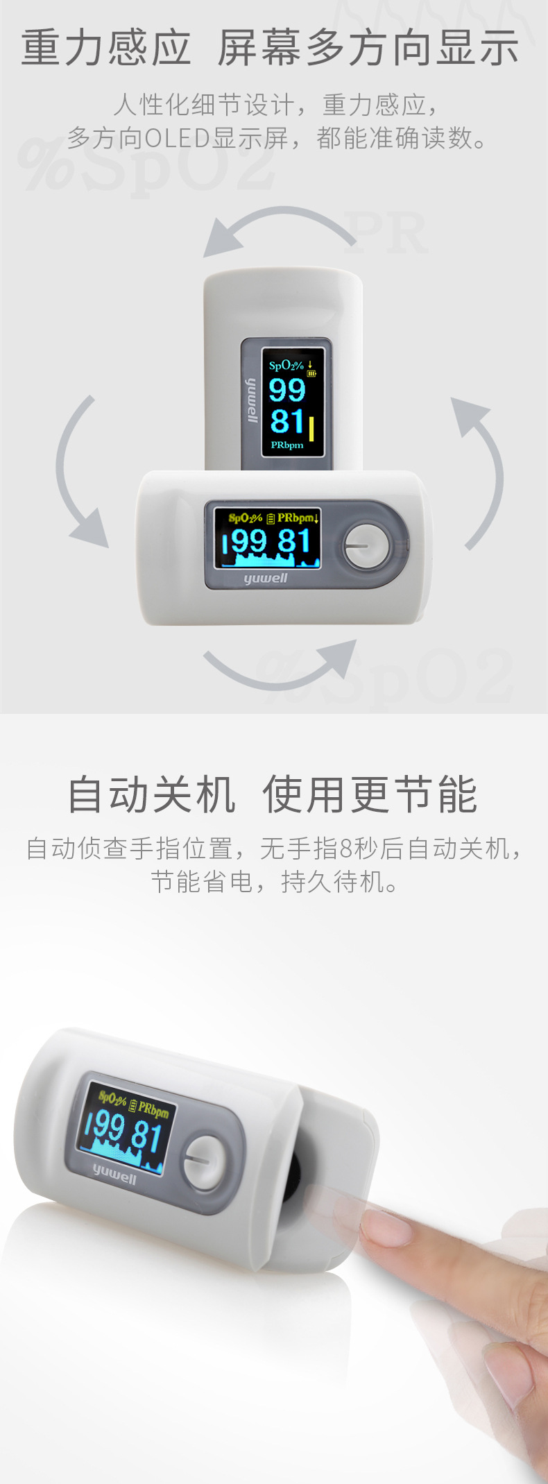 商品名称:医用指夹式脉搏血氧仪心率监测家用早产婴儿老人用 医院宣传礼品