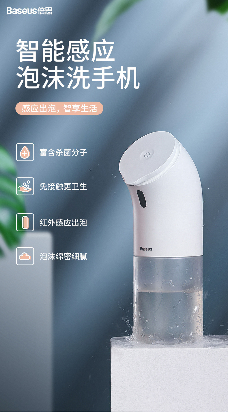 商品名称:Baseus 简约洗手机自动感应泡沫机 儿童抑菌水槽皂液洗手液器 健康礼品定制 店庆礼品