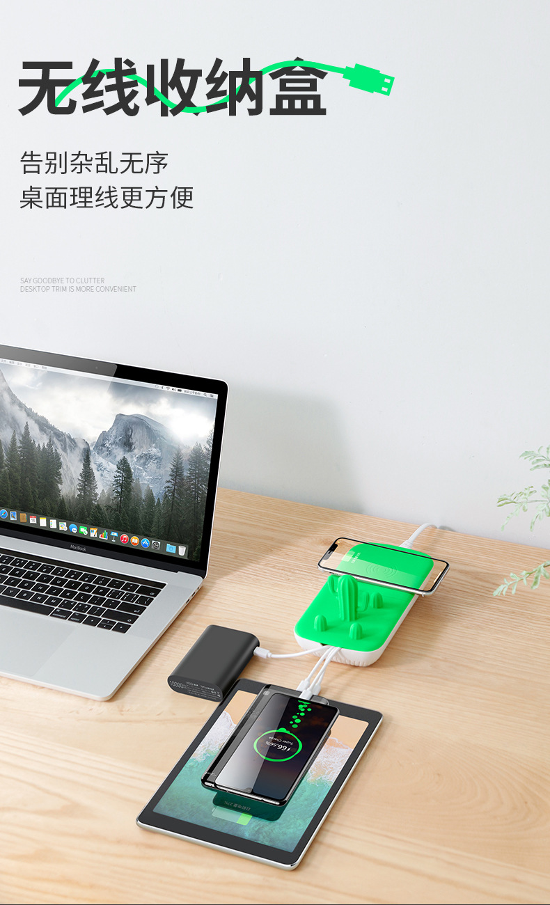商品名称:创意数据线收纳盒无线充 手机支架多口USB手机充电器 创意礼品定制 数码小礼品