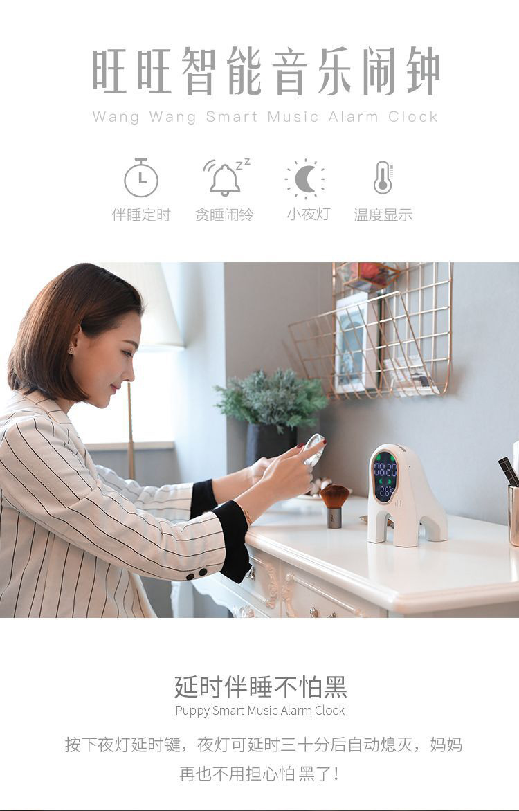 商品名称:旺旺智能音乐闹钟 创意延时唤醒多功能 科技创意礼品