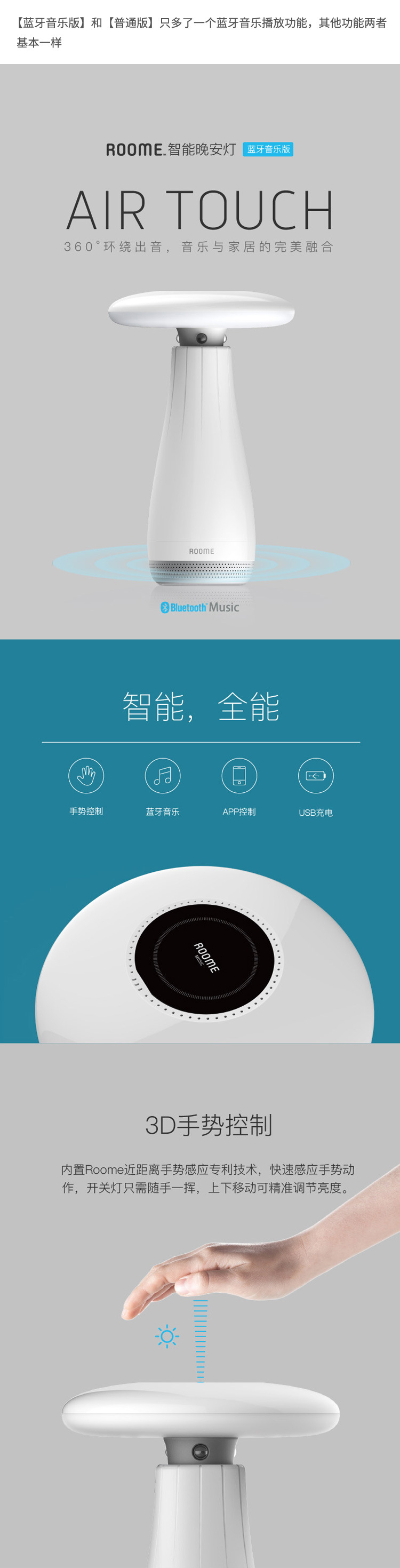 ROOME Air Touch 手势控制智能蓝牙音乐台灯 越用越聪明床头灯 触控感应 年会活动小奖品