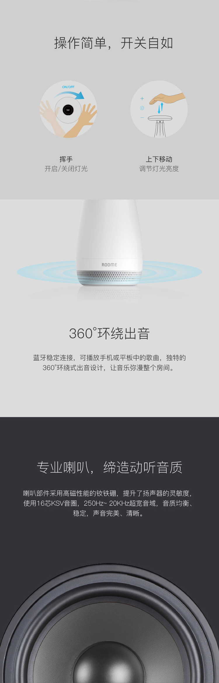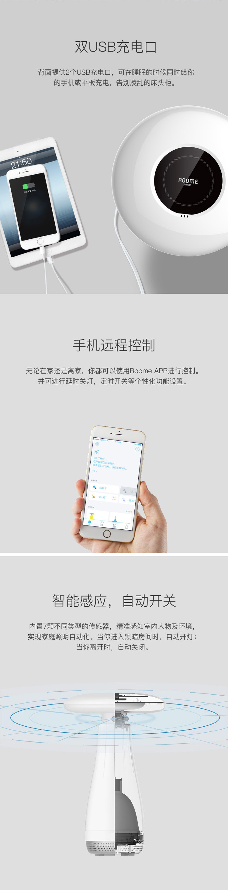 商品名称:ROOME Air Touch 手势控制智能蓝牙音乐台灯 越用越聪明床头灯 触控感应 年会活动小奖品