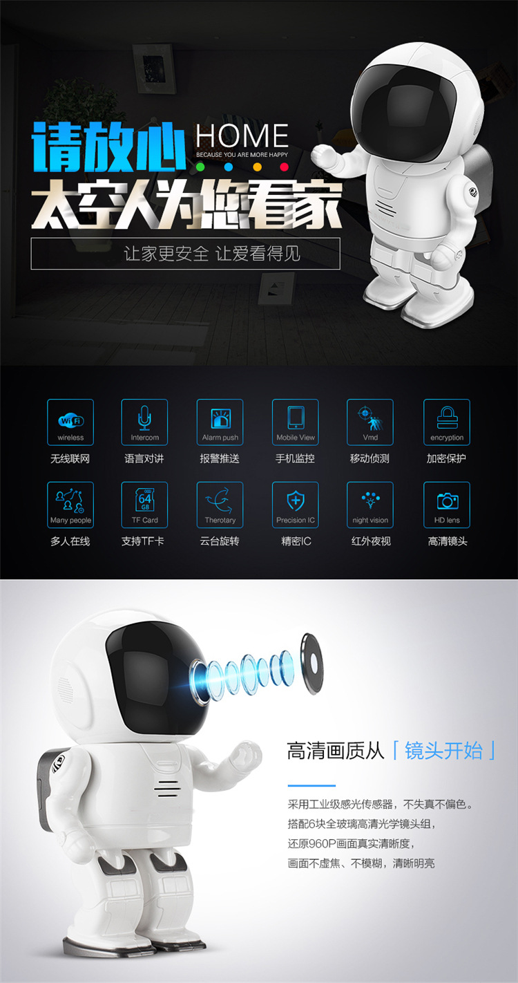 商品名称:太空人智能云监控摄像机 可旋转wifi手机操作1080P 送客户礼品推荐