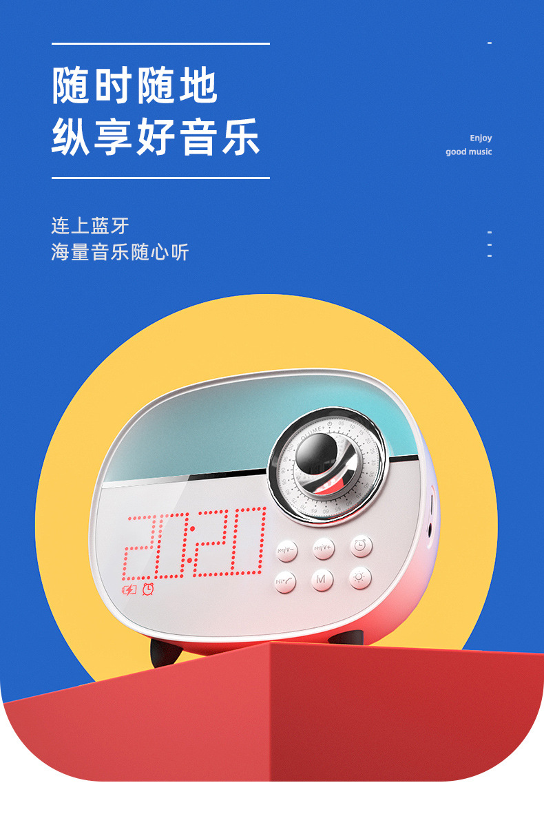 商品名称:REMAX 复古桌面收音机蓝牙音箱5.0 多功能闹钟夜灯蓝牙音箱 年会安慰奖品 商务型礼品